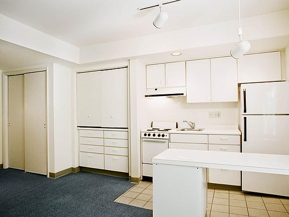 Third-floor studio located in a contemporary apartment building with wall-to-wall carpet; wall-unit air conditioning; modern kitchen with refrigerator and range; ample coin-operated laundry facilities in building; off-street parking available for an additional fee. Resident is responsible for electric. Heat is included in the rent. Off-street, uncovered parking: $50.00/month; Garages (where available): $115.00/month