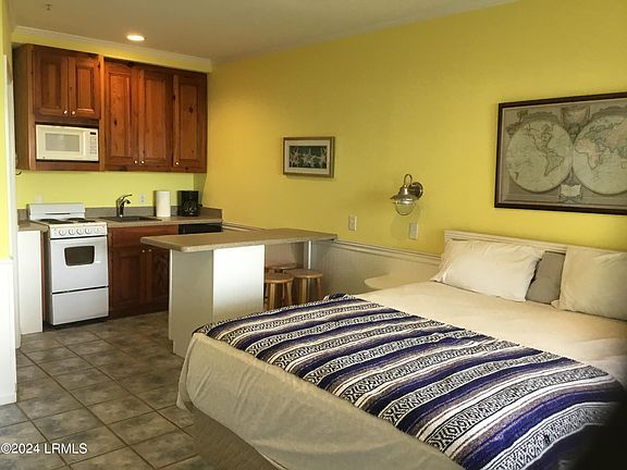 The perfect Beach Getaway! Great mid-island furnished studio is just steps to Fripp's best beach. The unit is located on the first floor, with no steps, and great views of the Olympic pool! Just around the corner you will will find Fripp's Food Court, fine dining at the Beach Club, adult pool, and the famous oceanfront Sandbar. Across the street is the Fripp Racquet Club with the ever popular Pickleball courts. Regime fees covers, cable/internet, trash, water, sewer, building insurance, exterior maintenance, electric, and pest control. Fripp Island Resort does have the Right of First Refusal on this Sun suite.