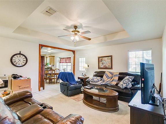 Wonderful home on an oversized lot with 30x30 workshop with electricity. The workshop has an overhead door with access off FM 916 for easy convenience to park additional vehicles or to unload tools. The workshop has an insulated room built out inside with a window unit. There are also two workbenches and shelves. The home offers 3 bedrooms, 2 bathrooms, 2 car garage with an oversized utility room. The kitchen has nice countertops with a dining area with a large window overlooking the backyard. There is great storage throughout the home. The home also has a large covered patio for you to enjoy the outdoors and a wonderful garden. The home has central heat and air but also has a propane heater installed.