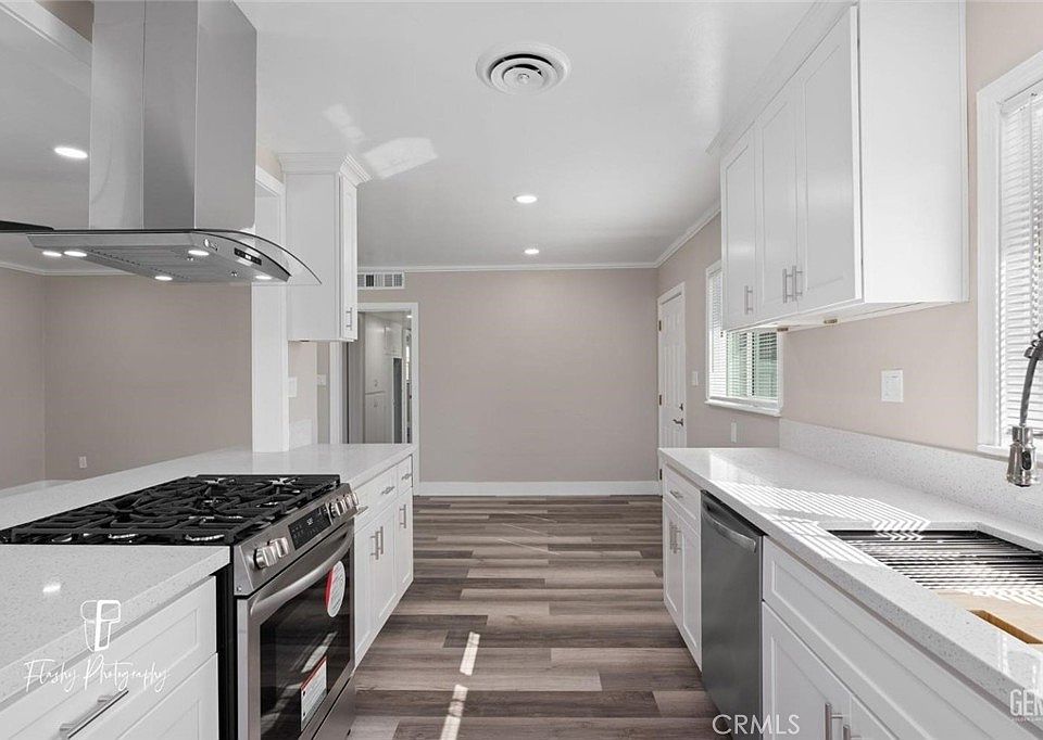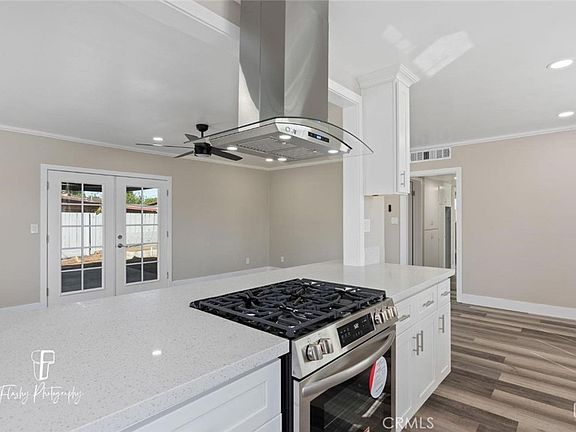 3 bedroom 2 bath home featuring spacious 6,534 sq.ft. lot. As soon as you walk in you will feel at home in this bright open concept property. You will love spending time and entertaining in the bright living room that offers tons of natural lighting provided by the dual pane energy efficient windows and french doors. The stunning kitchen is a cooks dream. As it overlooks the living area and featuring large island, custom cabinets, updated sparkling quartz countertops, sink, faucet, light fixtures, and stainless steel appliances. All bedrooms feature updated light fixtures, blinds, closet and bedroom doors. Both bathrooms have been updated with custom tile showers, custom vanity, new faucets, mirrors and tile flooring. The rest of the home offers updated luxury waterproof flooring, baseboards, recessed lighting, and fresh paint throughout. On the exterior you will find fresh paint, attached two car garage, and covered patio.