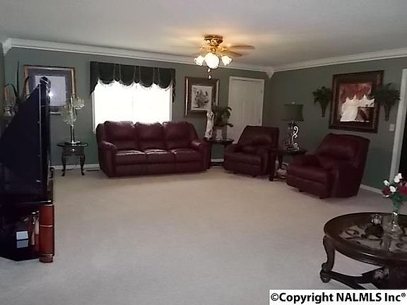 This home is in fantastic condition amenities include a walk-in closet in every bedroom as well as 2 in the hall, a large laundry room with folding table and shelving, formal dining room, large kitchen with all kitchen appliances to remain, hardwood flooring, oversized rooms and much more. New amenities in April include vinyl siding, gutters, deck, front porch railing and post. This home you will have to see to believe. Call Deborah Burton at 256-599-2084 to view this beautiful home sitting on over an acre.