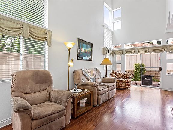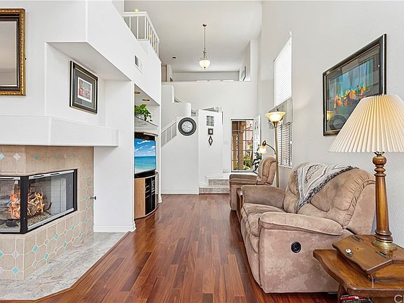 End unit condo with two bedrooms and a LOFT that can be converted into a THIRD BEDROOM! Beautiful engineered mahogany floors are found throughout the home. 20ft ceilings allow for plenty of natural light throughout the home since it is an end-unit with an abundance of windows. Two sliding glass doors lead to your OVERSIZED wraparound backyard with no neighbors looking in. The kitchen has plenty of storage as well as Frigidaire and Maytag appliances including a 4 burner gas stove, microwave, dishwasher and fridge. Downstairs is a half bath for guests as well as a laundry closet with appliances included. Brand new carpet was just installed on the stairway; the rest of the property has mahogany floors. Upstairs are two spacious bedrooms both with vaulted ceilings, two full bathrooms and a large loft. The loft can be used as an office or easily converted into a third bedroom. The master bedroom has an ensuite master bath, two closets, a gas fireplace and a private balcony. Enjoy the SoCal weather in your own private low maintenance backyard. The two car ATTACHED garage has four overhead storage racks, plus a RARE driveway spot for a third car. HOA features include an ocean view pool, spa and exterior maintenance of the property including the roof. Nearby amenities include the Rancho San Clemente Sports Park, hiking trails and a Lifetime Fitness coming this Fall.