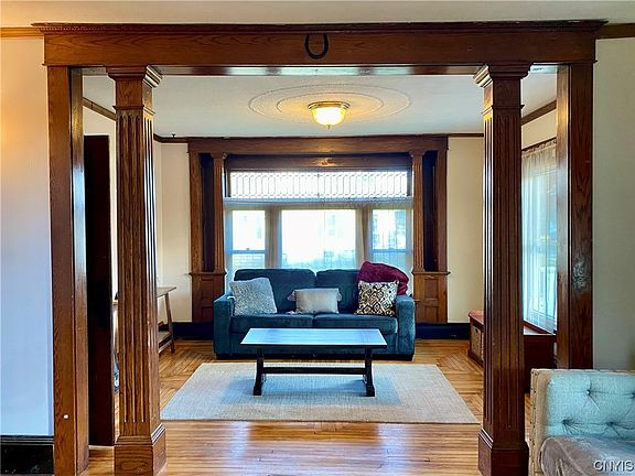 Spacious 4 bedroom home on the Oswego River in Fulton. Major improvements include exterior painting, first floor replacement windows, new boiler in 2020 and roof is less than 10 years old. This home has been tastefully updated while maintaining the original character woodwork including built-ins and window seating. Double livingroom has hardwood floors and is seperated by original solid wood columns. Formal diningroom is spacious and features original built-in cabinetry and storage closet/pantry. All four bedrooms are on the second floor and have hardwood flooring throughout. Full walk-up attic is ready to be finished for additional living space. Property is located just 30 minutes from downtown Syracuse and offers 40' on the Oswego River. Taxes are shown without exemptions.