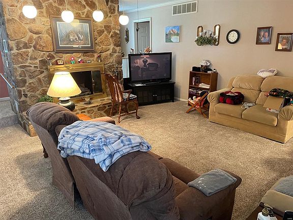 This immaculate ranch is fine tuned, well maintained and a pleasure to see. For privacy, each of the 3 bedrooms has bathroom access. The primary bedroom has a nice walk-in shower and a vanity with double sinks. Between the extra bedrooms is a Jack and Jill bathroom. An additional guest bathroom is available in the hallway, featuring double sinks. The layout is set for family living. A fireplace greets you in the Living Room for those cold winter days. Access to the backyard is through the Living Room and also through the Primary Bedroom. There is a covered patio off of the Living Room. Entertainment is what this kitchen says. A large Dining Room and a banquette provides seating for a crowd along with the bar. This kitchen comes equipped with appliances, including a downdraft stove. For parking, take your pick. There is a 2 car garage attached, a 2 car detached garage, that is presently being used as a mancave shop with office and 34 ft. RV awning. Don't miss this one. Additional Rooms: Mud Room