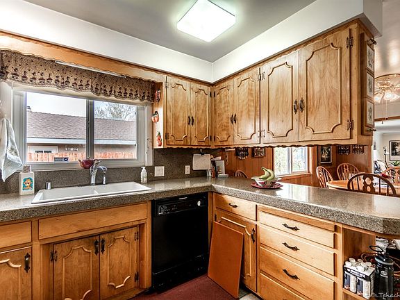 This lovely home is located in Tehachapi City.Open floor plan with nice brick fireplace and lots of light in the living room.The kitchen has corian counters and black electric stove top with separate oven.Large area off the kitchen for kitchen table and hutch if you need dining area space.All 3 bedrooms are down the hallway and hallway is tile too.Guest bath has tile shower/tub counter has tile as well with white vanity.Master bedroom good size and lots of natural light as well. Master bath room has shower with tile, sink has tile and tile floors. interior doors wood and beautiful.dual pack unit on the roof and house has newer paint outside.