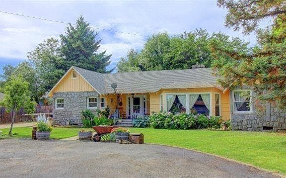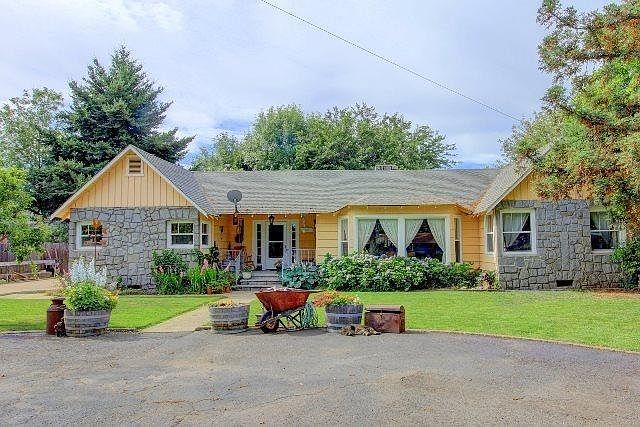 Amazing property located on a huge .40-acre lot with a tastefully remodeled 2272 sq ft, 5 bedroom, 1949-built home in the Historic District of Central Point. Located in Richardson School District 6, it sits far off the road with circular drive & lots of room for RV parking or extra cars. Huge detached shop w/opener (double garage converted to single w/large shop), big back yard and side yards with timed sprinklers, a greenhouse and wiring for a hot tub. Original hardwood floors, rock fireplace with pellet insert, inside laundry, small basement, tons of character & updates throughout; kitchen with island, custom concrete/granite countertops, hardwood cabinets w/black appliances, arched entry to the formal dining area, lots of built-in cabinetry from the bedrooms to the garage + much more. There are new vinyl Windows, one of the baths has been totally upgraded with sunken soaking tub, gorgeous walk-in slate shower, double sinks, recessed lighting and tile floors.