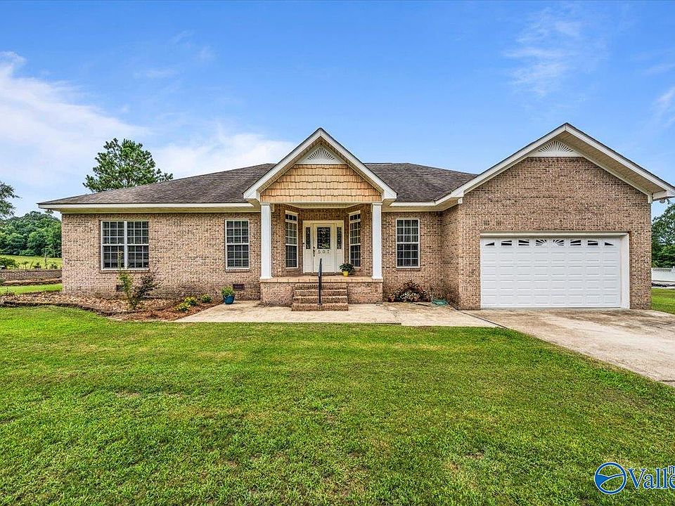 Freshly painted interior. This full brick home features 4 bedrooms and 2.5 baths. The formal dining room boasts a coffered ceiling, adding a touch of elegance to your dining experience. The large kitchen is a chef’s dream, complete with three pantries and a kitchen island. Relax in the spacious living room, highlighted by a cozy wood-burning fireplace and vaulted ceiling. The master suite offers a luxurious retreat with a tile shower, double vanity, and two walk-in closets. Master also features French doors leading out to deck. Enjoy outdoor country living on the covered deck, perfect for entertaining, and take a dip in the above-ground pool. Large tier fountain. Minutes from schools.