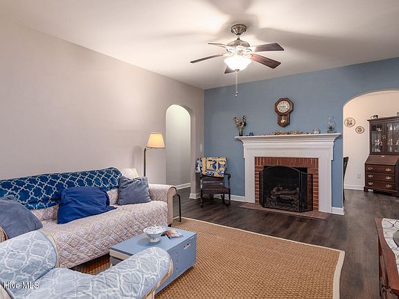 This charming bungalow is full of character and recent updates, making it the perfect place to call home. Inside you will find a cozy living space with new gas logs and beautiful updated flooring. The galley kitchen is both stylish and functional, featuring stainless steel appliances, a sleek tile backsplash, and crisp white cabinetry with plenty of prep space. The bedrooms are comfortably sized with ample closet space. Outside, the spacious backyard is perfect for relaxing or entertaining, complete with a storage shed for all your lawn and garden needs. The HVAC and ductwork were replaced in 2019. The roof was replaced in 2021 and the widows replaced in 2022 for added peace of mind. Conveniently located near Historic Downtown New Bern's shopping and dining, this delightful home is waiting for you. Schedule your private showing today!