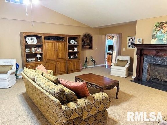 Lovely, well-built home with plenty of room both inside and outside. 1.74 acres with 2,570 sq. ft. home. Improved with 27.5 x 20.4 family room with fireplace & pitched ceilings. Formal living room, formal dining room PLUS informal dining area (or large office). Kitchen has solid surface countertops, tile flooring, appliances. Two updated bathrooms. 3 large bedrooms, 10 x 12.3 utility room. Lots of crown molding. Large deck for entertaining.