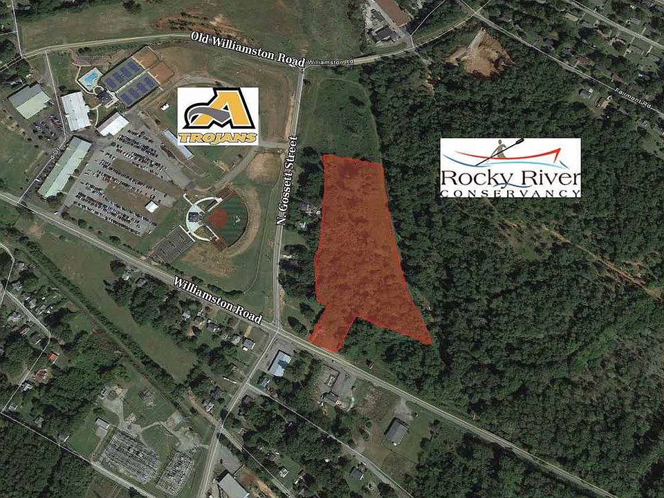 **±7.75 acres (Approx. 2.6 high)** **Surrounded by Anderson University** **Approx. 135' frontage on US 29 (Williamston Road)** **800 + feet on Cox Creek** **Adjacent to Rocky River Nature Park** **Zoned Light Industrial** **Many possibilities**