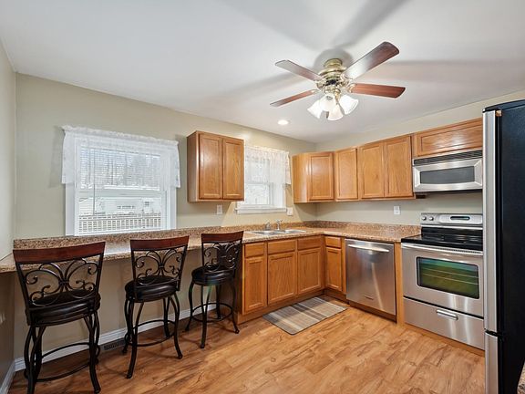 Immaculate 4 bedroom, 2 bath, attached garage, ranch style home on a double lot; with a new bonus storage shed large enough to fit a car! This home has been updated from top to bottom and comes partially furnished for you. It features newer windows (all shades to remain), central air unit, stainless steel appliances, new countertops, a bar area with bar stool chairs, & dining room table all to remain for the new buyer. On the lower level you will find a furnished living or recreational room, 2 bedrooms, and a bathroom. The exterior features a spacious patio area, gas grill which will remain with the home, and plenty of room to entertain. An additional 2 car parking pad was added in the back of the home offering additional parking space. This is the home you have been waiting for!