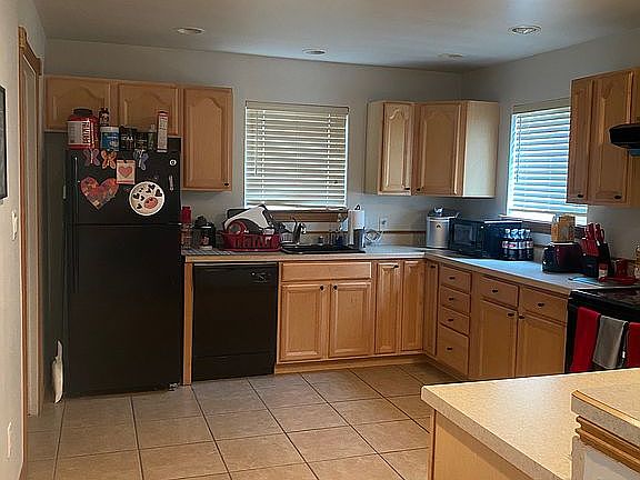 2 BR, 2 bath home on 1/2 acre! All tile, no carpet. Open floor plan. both BR's have organized closets, fans and blinds. Living room has unique copper blinds and nichos. Kitchen has breakfast bar fridge, dishwasher and electric stove. Outside are two out buildings, covered porch and mature trees/bushes etc. One car garage. Easy Access to HWY 70!