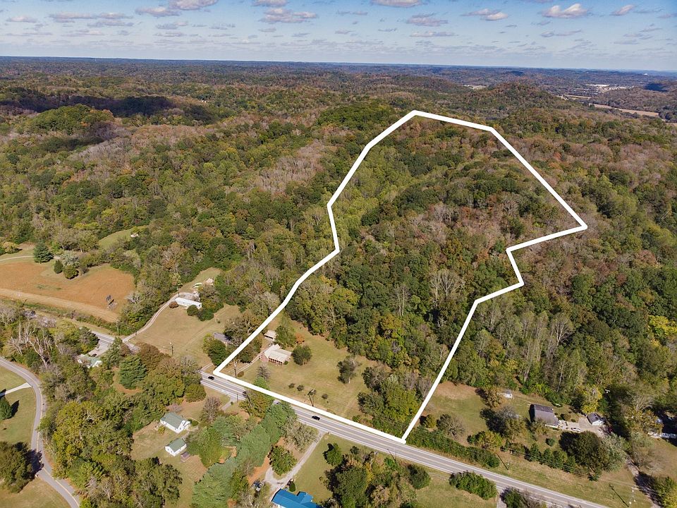 1 level brick ranch on 38 acres & only 7 miles from Downtown Nashville but as quiet as can be! $200k+ in reno done in 2014. Awesome living, kitchen, laundry and bath! Huge hardwood trees & lots of beautiful scenery. Live here while you build your forever home on on the back of the property then sell off the home (already a separate tract) or rent it out for income! Easily make a 3rd bedroom out of the den. 37 ac. can be purchased w/o home for $275k. Utilities at road. Sewer near but not on site.