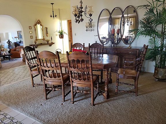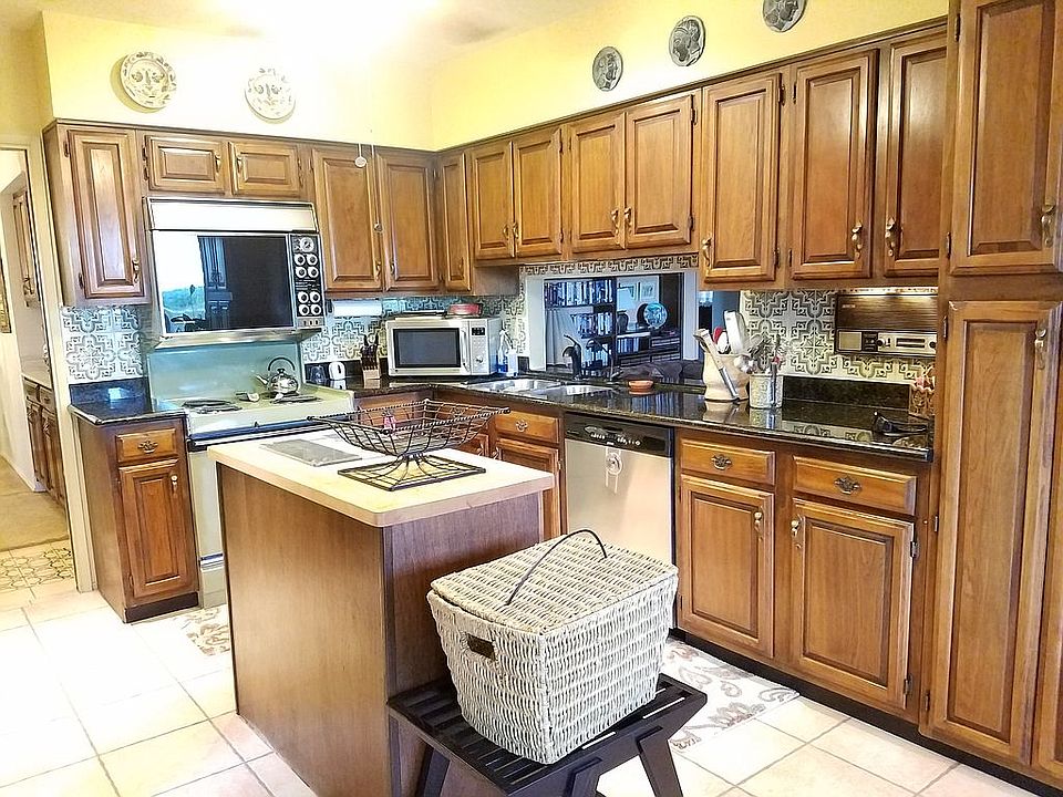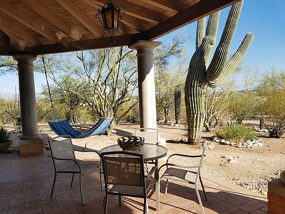 This is a beautiful, enormous family Spanish-style home located in the foothills in a quiet neighborhood. There are two separate wings to the house, making it ideal for hosting friends and family. The 2 car carport leads to the laundry room/mud room, which opens up to a bright and sunny living space with plenty of seating. The living room has a working fireplace and a wet bar. The first wing to the right of the living room has two large bedrooms and a bright guest bathroom with a nice hot shower and double sink. The eat-in kitchen, connected to the living room, has a vintage avocado green double oven, lots of storage, and access to the back patio, which runs along the entire back side of the home. It also has a newer fridge, microwave, garbage disposal, and dishwasher, along with many useful small kitchen appliances (blender, toaster oven, coffee pot, etc.). It was perfect for our family of 7 for Thanksgiving this year. The back patio contains many areas to relax and enjoy the wildlife. It has a working outdoor grill, hammock, and is a hummingbird s paradise. The light and airy hallway with sliding glass doors leads past the formal dining area, front door, and formal living area (perfect for games, reading, or a tree at Christmas time) and to the master suite. The master is HUGE, with an en suite bathroom with double sinks, a vanity, a walk-in closet, a large shower, and a connected small bedroom (also would be perfect for a nursery or home office). There are multiple areas for storage throughout the home, including a linen closet, closet in every bedroom, hall closet near the front door, and storage closet near the guest bath. The owner also has a storage unit in the carport to which you would not have access. This home has been our home for under a year, but has been the owner's home for 50 years. It is immaculately kept, and Maria is a responsive, kind landlord, and a Tucson native who loves the home and the land it is on. The views from the back of the home and the outdoor space are what really make this house a rare find. Additionally, the home comes furnished (including linens, towels, and cleaning supplies) at no additional cost, & is pet friendly with conditions. We have loved this home like it is our own and the only reason we are leaving is to buy a house of our own, as being in this home inspired us to do! We can't wait to show it to you. Owner pays for water and yard maintenace
