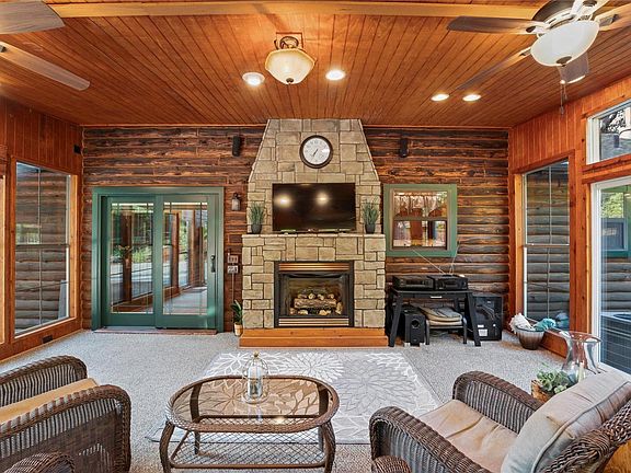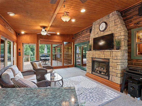 Looking for a custom, country home on 5 private acres? If so, you won’t want to miss this oasis and all the extra features it offers! Entering the property, you will cross the creek reaching the electronic gate which serves as a gateway to this fabulous estate. You’ll be greeted by a fully stocked pond, a heated detached garage/workshop, a custom playhouse with electricity, a shed, 4 decks, 2 patios, a large above ground pool with a pump, a waterfall and beautiful landscaping. Inside you’ll love the 3 main floor bedrooms, a finished loft overlooking the family room with floor to ceiling stonework, a fabulous, huge, four-season room with a built-in bar, hot tub, speaker system and a gas fireplace. Downstairs to the walkout lower level you’ll find a family room with a 3rd fireplace, a 4th bedroom and a ½ bath. Plenty of power with the single phase 400-amp 120/240 service and you’ll love the option of heating the house with the wood burning stove. Come and make this your new home!