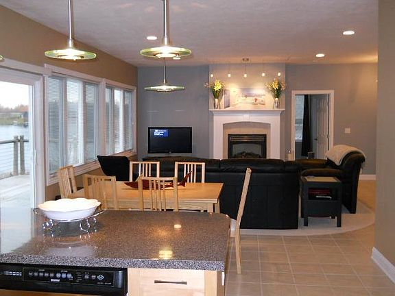 Beautiful walkout ranch on Crooked Lake, 167 acre all sports with no public access. The perfect floor plan, open living room with two sided gas firplace w/remote controlled temperature, nice big kitchen, pantry, stainless steel appliances, main floor laundry. Owner's suite shares fireplace, double vanity, walk-in tiled shower w/triple shower heads and corner jacuzzi tub. Newly finished walkout level has 9' ceilings, 2 bedrooms, full bath, double vanity and snack/wet bar area ready to add dishwasher, frig, sink and microwave. Maintenance free 12 x 40 Trec deck. Many upgrades include tankless water heater, two-zone furnace, water softner, extra deep three stall garage with 220. Bring your fussy buyers to this one owner well maintained home. Lowell school district.