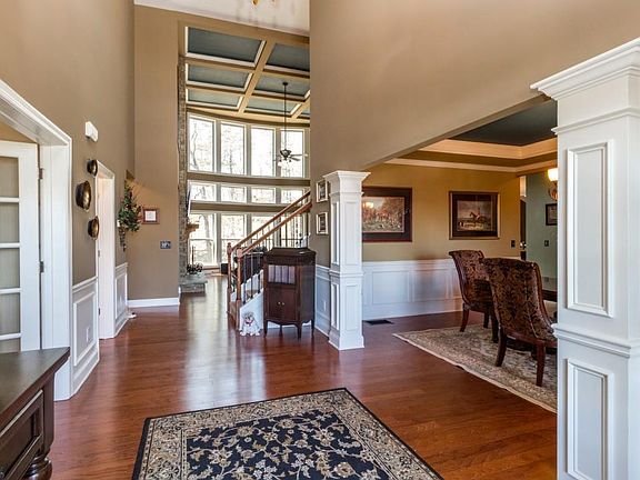 - Interior: Entrance Foyer, 9 ft + Ceil Main, Bookcases, Exposed Beams, 10 ft + Ceil Lower