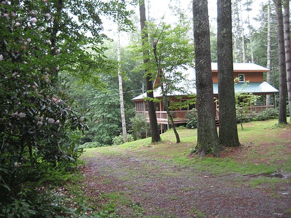 10 ACRES WITH RUSHING CREEK AND PICTURESQUE CABIN. The 12x44 SCREENED PORCH overlooks the stream at close range or open the windows and listen to the water cascade over the boulders. THIS IS A UNIQUE PROPERTY. This 2 bedroom, 2 bath was built with quality in 2008 and has many upgrades such as a wrap around porch on 4 sides, metal roof, basement, cathedral ceilings, wood stove, heat pump, hardwood floors, carport, utility building, small but separate quest quarters for overflow or great for the grandchildren to have their own adventure. THIS IS THE PLACE FOR YOUR FAMILY TO MAKE MEMORIES.