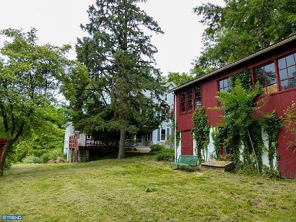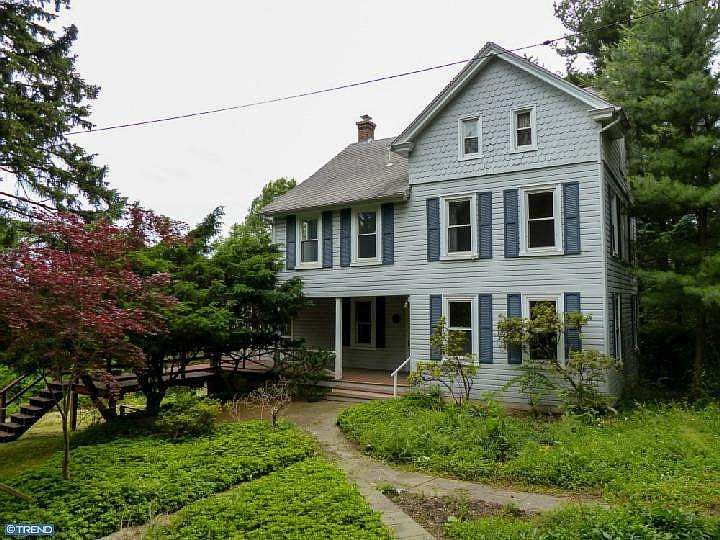 Lovely historic, colonial farmhouse built in 1865 located atop a hill in suburbs of Philly & community of Blue Ribbon schools. Flagstone path leading to porch w/extended deck welcomes you. Spacious first floor offers living rm, central dining rm, library w/built-in wooden shelves, powder rm w/shower, kitchen w/movable butcher block island & cozy den. Proceed to the second floor w/3 bedrms, full bath w/claw-footed tub & large outside deck. Third floor has additional 2 rooms for your use! Home has been updated w/large windows facing south providing extended kitchen & den w/bright, cheerful light. These windows look out to 2.7 acres of lawn, open field & woods w/blooming white dogwoods & crabapples. Basement includes workshop, laundry, & sun room w/wine cellar & door to outside garden. Additional building next to home provides carport for 2 cars, storage area & upper rooms w/electric & heat perfect for office or artist~~~s studio! Great location - close to schools & stores and only a 25 min drive to Center City!