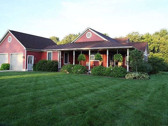 Has a horse farm always been your dream? Wander down the lane from all the hustle & bustle to your home sweet home situated on a sprawling 12 acre property with views of woods, stream & fields. 50x100 Barn is all set up for your horses: 4 stalls, tack room, 3/4 bath, washer & dryer. Relaxing views from the large porch area lets you sit & watch wildlife and your horses! Walk into the home & you are greeted by a spacious open concept with 3 bedrooms and 3 full baths. Easy access to the office area from garage & front door for your daily business needs. As you enter the master level suite complete with bedroom, full bathroom, walk-in closet and laundry room with area set up for crafts or sewing projects. A couple steps down from main level youâll find 2 bedrooms & a full bath on the ground level. Full basement stays warm with hot water heat running thru floors above. Call today for your personal tour!