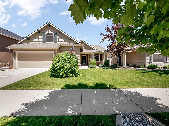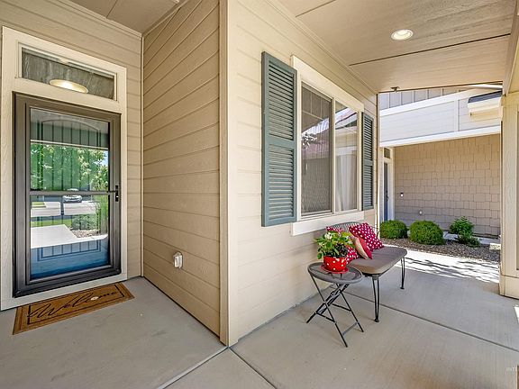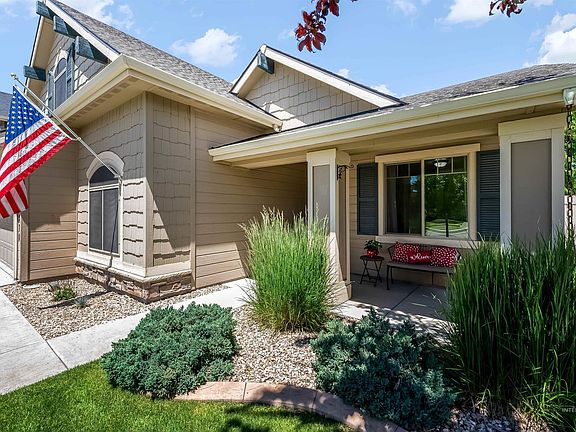 Stunning Meridian home where comfort meets modern living, highlights spacious, open rooms, a grand great room and a bonus room upstairs—perfect for a media center or play area. The master bedroom is a personal retreat complete with a walk-in closet. Thoughtful touches include dual zoned HVAC, a cozy gas fireplace, and air cleaner paired with a humidifier for year-round comfort. Boasting a large covered patio with heat shield shade, the backyard is ideal for entertaining, and is a serene haven for birdwatching and enjoying the landscape. Solar screens on the south-facing windows provide energy efficiency and added comfort. Located in a lovely neighborhood this home is not just a residence but a community. Conveniently located near golf courses, multiple community pools, playgrounds, pickleball courts, and scenic walking paths. Costco and Winco are just a short drive, along with a variety of restaurants. Here, every detail contributes to a lifestyle of comfort and ease, making it a perfect place to call home.