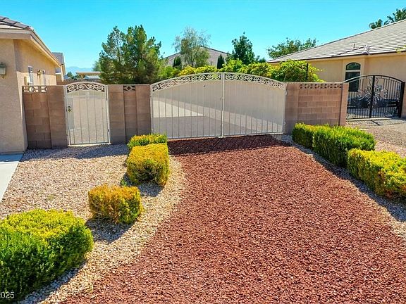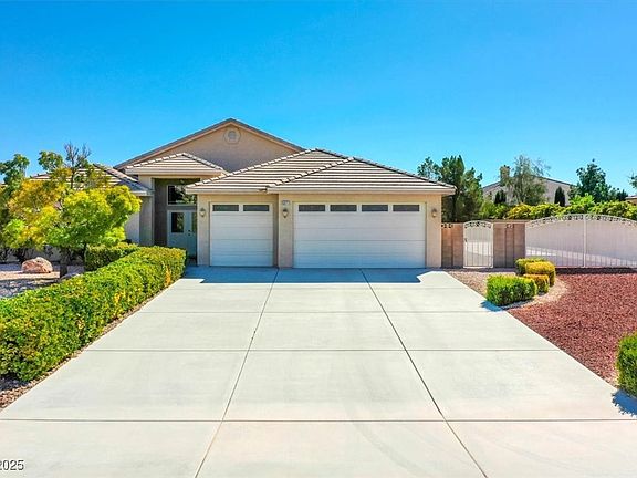 Beautiful 4-bedroom, 3-bath custom home in the desirable Artesia at Hafen Ranch community. Featuring a 3-car garage, RV gate, RV pad with full hookups and clean-out, this 2,538 sq. ft. residence offers comfort, style, and functionality—just 55 minutes from Las Vegas in the South Pahrump Valley. Inside, enjoy a center island kitchen with breakfast bar & nook, stainless steel appliances, and ample cabinet space. The formal dining room with built-in hutch adds elegance, while the spacious living room features vaulted ceilings and a floor-to-ceiling stacked stone fireplace. A mini primary suite provides privacy, separate from the other bedrooms. Step outside to your backyard retreat with RV parking, double gate access, low-maintenance landscaping, and fruit trees—peach, apricot, and plum. Only 1 owner. Artesia at Hafen Ranch offers a true community lifestyle with a clubhouse hosting neighborhood events, walking trails, play areas, and a dog park.