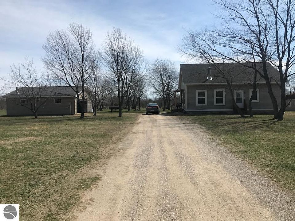 Peaceful country acreage! Two bedroom, two bath home on over 2.5 fenced acres outside of Mancelona. Country retreat with detached 3+ car garage with electric and an insulated ceiling and three additional outbuildings, 5x5, 20x8, and 8x8. Perfect storage place for UTV's or snowmobiles--or both! One of the sheds has electric run also, could be a she-shed or tiny house. Inside the home, the primary suite is handicap accessible with widened doorways and a low threshold shower. An additional loft/bunk area with a balcony makes a great guest sleepover or office space. Just down the road you'll find North Central Academy and easy access across the road to snowmobile trails. Check out this rare find with acreage and opportunity for an up-north retreat!
