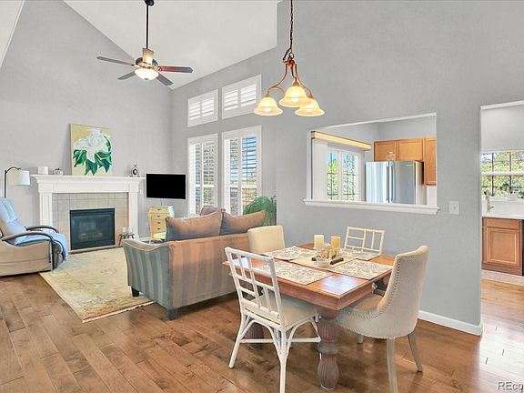 Must see this one of a kind multigenerational end unit townhome that faces open, treed, greenspace! Beautiful prefinished hardwood floor in entryway, family & dining rooms, kitchen & hallways. The window & slider provide a light & bright environment in the kitchen that offers eating space, counter space & new backsplash tile, + a convenient pass through to the dining room. The sliding glass door leads to a nice size wrap-around patio with motorized awning & 180 degree views, stretching from the South to the West, along with the kitchen sink window that overlooks greenspace & mountains. Main level primary suite features 2 closets, 1 is a walk-in, an ensuite bath with walk-in shower & oval soaking tub. The layout of the multigenerational mother-in-law suite in the finished basement adds another full kitchen, including a dishwasher, stove, fridge, & microwave, + separate living room, & a large bedroom & bath with heated tile floor. Main level family room with gas fireplace framed by columns that support the mantel, invite you to sit & enjoy the ambiance, which is enhanced by the wall of windows. Second bedroom, on the main floor, with a walk-in closet & is adjacent to the hall bath & linen closet. As you ascend the stairway you will find an art niche, located at the landing, providing a great spot for that favorite piece in your collection. These stairs lead to the large loft that overlooks the lower level & prominently displays the built-in desk with upper & lower cabinets, & is connected by a bridge to a handy full bath with new floor tile & toilet, making this upper level a perfect retreat for catching up on work or unwinding. The entry & laundry closets are accessible as you pass by them going to & from the 2 car garage, for effortless preparation for your departure or shed outerwear upon your arrival.