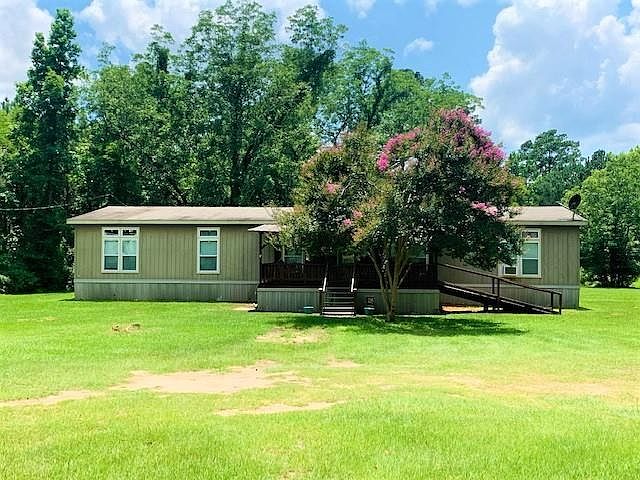 Country Living! Spacious 4B/2B modular home, approximately 2280 sq ft located in Bronson. Sits on approximately 1.973 acres with a front porch and a back porch that is partially covered and very private. Concrete pad with water and electricity hook ups for an RV. Elegant kitchen with granite countertops, stone surrounding the island and stove area and a built-in hutch. The master bath has an oversized tub, walk-in shower, double vanity and large walk-in closet with 2 doors to access from either side. 2 spacious living room areas, built in desk/cabinets, large laundry/mud room with oversized sink, built in bench and storage space and an additional walk in storage closet. Crown molding throughout. Very neat and clean and conveniently located to Pineland ISD.