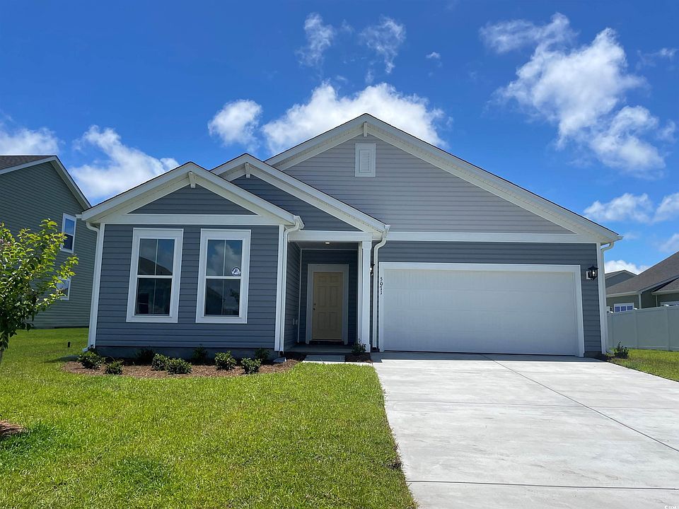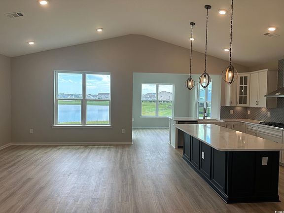 Move in Ready! The ever-popular Georgetown featuring 3 Bedrooms, 2 Baths, a Gourmet Kitchen, and a Carolina room. Upon entry the generous foyer, offers a warm welcome. Host gatherings and seamlessly prepare gourmet meals in the open-concept kitchen and great room with a vaulted ceiling. Your upscale kitchen boasts Statuary Unity Quartz countertops (a huge Island that DOES NOT have the sink in it), Whirlpool stainless steel kitchen appliances (natural gas cooktop, exhaust hood vented outside, wall oven, wall microwave, and dishwasher), White 42" upper and lower cabinets, an Admiral Blue kitchen Island, roll out shelves, a waste basket drawer, glass mullions, soft close doors/drawers, a white cast iron Kohler apron sink, a glass pantry door, wooden pantry shelves, under cabinet lights, and easy maintenance REV Wood laminate flooring by Mohawk. The Primary Bedroom features a tray ceiling, REV Wood flooring, a bay window, and a fantastic 5ft walk in tile shower with a Moen rain shower head and wall shower head, a generous walk-in closet and a double vanity. The Great room is open to the kitchen and Carolina room. A perfect home to entertain guests! A lovely view of the lake can be enjoyed from the Carolina room, Great room, and Primary bedroom. 100% Energy Star Certified and Indoor AirPlus Qualified by the EPA which means a lower utility cost, healthier indoor air quality, less moisture, less air loss, and noise reduction. Spray foam insulation, 2x6 construction, an ERV- Energy Recovery Fresh Air System, Rinnai tankless natural gas water heater, and more! Community amenities: pool, clubhouse, and exercise room. Conveniently located just over the Intracoastal Waterway, 6.5 miles to the beach, 2 miles to the Tanger Outlet shopping center, and minutes from several dining and shopping venues.