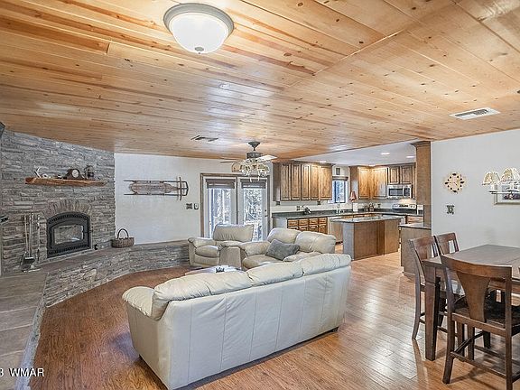 This cozy cabin is nestled in the tall pines of the desirable Blue Spruce neighborhood in Lakeside. Close to restaurants, shopping, hiking trails, fishing, several championship golf courses and Sunrise Ski Resort. 3 bed 2 bath with a newly remodeled kitchen which includes custom cabinetry, granite countertops, new flooring and appliances. The spacious bedrooms allow for plenty of space for family or guests. A custom gazebo out the back french doors allow for fun cool summer nights outside. Inside laundry and large extended length 2 car garage. Seller is a licensed real estate agent in Az.