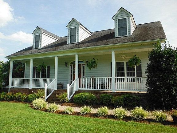 Three bedroom, 2 bath Cape on 5 open acres. Bright & spacious rooms, formal dining room w/hardwood floors, large eat-in kitchen w/lots of cabinets, fenced back yard, fireplace, spacious master bedroom w/en-suite bath & walk-in closet. Screened back porch & country front porch. Detached garage w/heat & air, storage, & bonus room could be converted to a quest house. Has a generator & security system