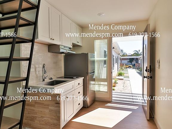 **OPEN HOUSE Friday 05/23 1:00pm-2:00pm!! Throughout the home you will find beautiful laminate plank flooring throughout the living room, kitchen, dining area, and upper loft. Unit feels spacious with the additional privacy of an upstairs loft and 16 foot ceilings! The living room is flooded with warm light coming through the large windows and a remote- controlled mini split with both heating and cooling options. The unit also features a washer/dryer making laundry a breeze! In the kitchen, the clean white quartz countertops and stunning beadboard paneling on the walls contrasts beautifully with the matte white cabinetry for a clean and contemporary look. The cabinet doors are accented with champagne bronze hardware and the home has brand new stainless steel appliances unit. This luxury apartment studio is located in the charming neighborhood of Talmage- which has tons of fun neighborhood parades, block parties, and family gatherings! Talmadge was established in 1925 and is a historic neighborhood in the heart of San Diego's Mid-City community. Talmadge is named after three Hollywood silent movie stars, Norma, Natalie, and Constance Talmadge. Originally it included the area of Kensington, but it is now known to locals as "Ken-Tal", as they share the monthly publication "Ken-Tal News." This suburb-like neighborhood has fun community events like Food Trucks Nights in the Summer and an annual Block Party in October. Drive around Talmadge and you will see the historically restored black Talmadge gates and Talmadge Circle, a charming turnabout, at the heart of Talmage. RENTAL DETAILS Lease Duration: 12 months Utilities Included: Trash Pickup, Exterior Landscape Tenant Pays: Gas/Electric and Water/Sewer (BillBack) Parking: Unassigned Street Parking Heating & AC: In-Unit Mini Split Laundry: In-Unit Pet Policy: Cat and Small Dogs (under 25 lbs) w/ Pet Rent $30/month and $250 Pet Deposit SHOWINGS To schedule a showing, visit The Mendes Company website and click on "Property Management," then "Search Properties." Select "Schedule a Showing" under the property you are interested in and follow the prompts. NOTE: If you are asked to enter your social security number, it is because you did not pass the ID scan or credit card identification check. Our software will only take government issued state Identification Cards with clear, well-lit photos. We must take strict security measures to verify your identity in order to avoid scams. APPLICATIONS Do NOT apply if you have not toured the inside of the rental home in-person. There are no exceptions. If you apply prior to touring the inside, your application will be denied. Please feel free to call our office ahead of applying to see how many applications are pending. If you choose to submit an application, you agree to the terms and conditions of the application that state your $40.00 application fee is non-refundable regardless if someone ahead of you is approved. To apply, visit The Mendes Company website under "Property Management." QUALIFICATIONS FOR THIS PROPERTY ONLY: The rental decision is based on these four combined factors: 1. Strong Credit History (no past or present accounts in collections, no charge offs, no debt settlements, no late payments, no negative credit items, etc.) 2. Positive Rental References (Paid on-time, no lease violations, no balance owed, etc.) 3. Gross Monthly Income (Proof that gross household income is at least 2.5 times the monthly rent.) 4. Your Lease Start Date (Looking to start the lease within 10 days of the listing available date.) **Guarantors/Co-signers are NOT allowed for this property. If you submit a Guarantor/Co-signer Application, the application fee will NOT be refunded. SCAM ALERT! The Mendes Company does NOT advertise rental homes or apartments on Craigslist or Facebook. Showings may only be scheduled on The Mendes Company website and no other way. Please call our leasing office prior to paying or sending money. We will never ask for payment via Zelle or Venmo. FAIR HOUSING COMPLIANCE The Mendes Company complies with all federal, state, and local fair housing laws and welcomes persons of all race, color, religion, nationality, sex, familial status, disability, sexual orientation, and gender identity. A/C Mini Split Common Area Cleaning Service Common Area Landscape In Unit Washer/Dryer Trash Collection