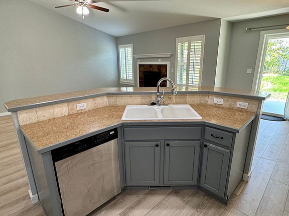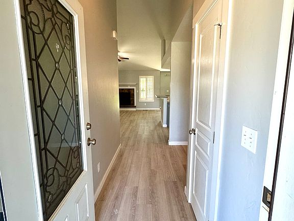 This is a well kept property with exceptional quality. Brand new flooring throughout. Fresh paint. Spacious living room with vaulted ceilings and a fireplace. Plantation shutters throughout. Breakfast bar with lots of counter space and a large double sink. Enjoy outdoor living with an oversized covered patio and a large yard. Enjoy a charming 10x12 storage shed tucked to the side and painted to match the house. Large 2 car garage. Great family friendly neighborhood. One dog allowed with an additional security deposit. Tenant responsible for all utilities. Gardener is covered by owner.