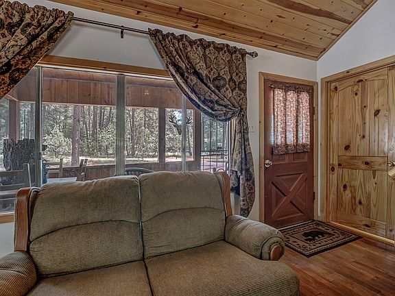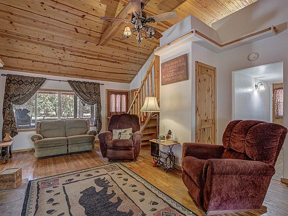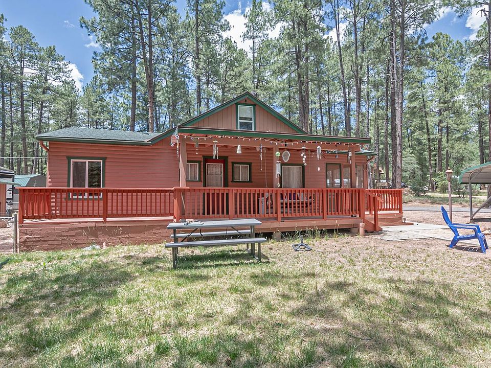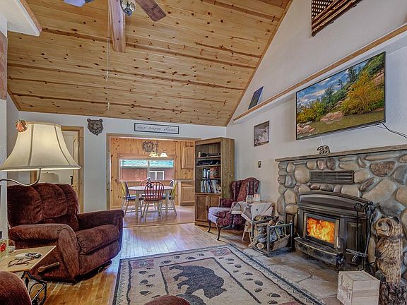 Looking for tranquility and value, now priced below recent appraisal! Hurry and scoop up this beautiful cabin, it is spacious with 2 bedrooms, a 3/4 and 1/2 bath! in the main house, plus a sleeping loft. Roomy kitchen with huge utility room attached. Large dining area for family dinners or a casual breakfast in the pines! Cozy main living area with fireplace plus a small media/gaming room. Must see! Secondary residence was a two-car garage now a very comfortable studio with kitchenette and large full bath. Separate patio area. Great for multi-generational families, separate guest houses. Check regulations to use as an AIrbnb. Nice outdoor firepit, horseshoes and plenty of run around area makes for a busy and fun residence! Main house has large screened in porch, large open deck and a rear covered area. Nice storage shed as well. House sells furnished.