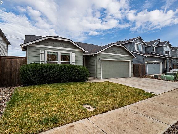 Nestled in a newly built subdivision, this inviting single-level home waits for you! The Edgewood floor plan allows you to enjoy the spaciousness of an open living area and kitchen with vaulted ceilings. The kitchen houses gently used stainless steel appliances and is fully outfitted with granite countertops, of which there is ample space for meal prep!The private, fenced backyard makes for the perfect retreat! With an already laid patio, it's ready for you to make it your own space for relaxing or entertaining! Planted out back are a pippin apple tree and Santa Rosa plum tree that have already produced fruit. Enjoy the convenience of an attached garage, and the benefits of the new construction! This home already comes with energy efficiency and modern amenities, promising both comfort and cost savings. Don't miss this opportunity to make it your own?schedule a viewing today and step into the future of comfortable living in Springfield, Oregon.