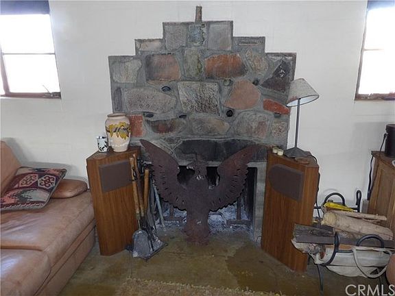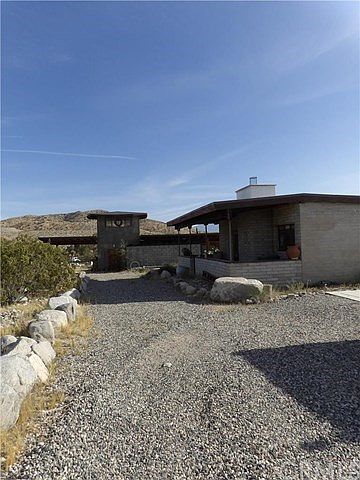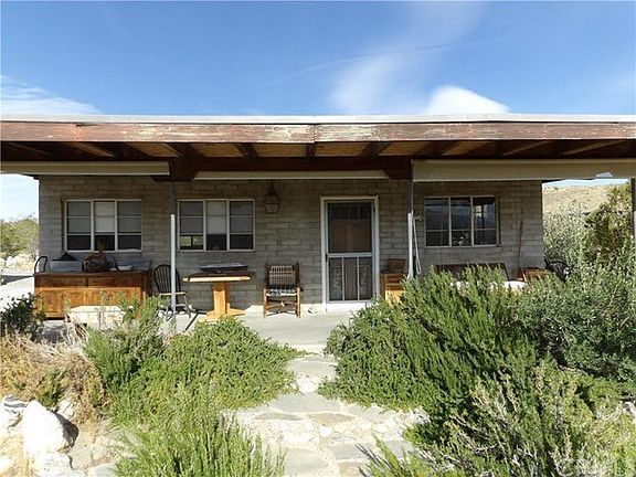 What a find! Located just a block off a paved road. Studio cabin built in 1957 of impeccable block with patio surrounds on east and west sides. Enter the rustic front door to find the stained concrete floor, open beam ceilings, mini kitchen and spectacular rock fireplace. The east patio is perfect for a summer kitchen and dining room. They don't build them like this any more! The old crank style windows are set to incorporate the expansive views. Charming and rustic. There is water well that services the property and a pond for watering wildlife or cooling down during the hot summer days. The accessory structure is fascinating with a large work room and wall of windows, Swedish fireplace, toilet and sink and a "quiet room" with a bed. In addition to the work room there is a 2nd story lookout tower with windows and views all around. The front porch swing comes with the house as does any of the furnishings a buyer might want. The owner had boulders brought in and placed all around the property making a formal entry and many areas for enjoying the beauty of the desert. Surrounded by Sand to Snow National Monument and close to the Big Morongo Canyon Preserve. Ride your horse out the back of the property and get lost for days. Zoned for horses.