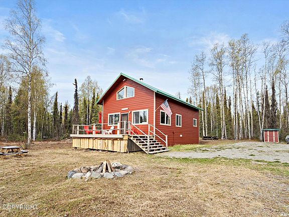 Beautiful, remodeled home on 4+ acres in desirable Caswell Lakes subdivision, Willow, Alaska. This wonderful home has been used as a seasonal retreat during all months of the year. Road access to the private driveway is maintained year-around. See Supplement for more details.New siding and exterior paint in 2022. With over 1,400 sf in the main home, warmth is easily maintained by solid, six-inch, insulated construction and includes a Vermont Castings wood stove and new double-wall stove pipe. The attached "Gear Room" provides an additional 165 sf. of indoor storage space. The home sits on a poured, insulated foundation, includes a well (with new ½ horse, soft start pump in 2018), and full septic. The home is not on the power grid but does include a new solar system which can easily be expanded to meet additional power consumption needs. Property also includes the "Power House" (solar, backup generator and shore-power controls), a large garage (12'W x 24'L), a gardeners/tool shed (8'W x 12'L) and a wood shed. With local phone lines already running to the home, data access is available. Lot clearing provides substantial fire barrier and considerable space for home-steading activities. New Caswell Fire Station is only one-half mile away. Home is insurable! Home is being sold furnished. Area amenities: Quick access to Kashwitna River, Sheep Creek and Montana Creek for fishing (salmon, rainbows, dollys and grayling). Just a few minutes to Caswell Lakes for swimming, canoeing, kayaking and paddle boarding. Trail system extends into Talkeetna Mountains, offering easy access to GMU14 hunting. Talkeetna activities nearby. New air strip being developed on Caswell Lakes Road will offer great plane access. Snow machine access on the North South Trail. Sheep Creek Lodge nearby.