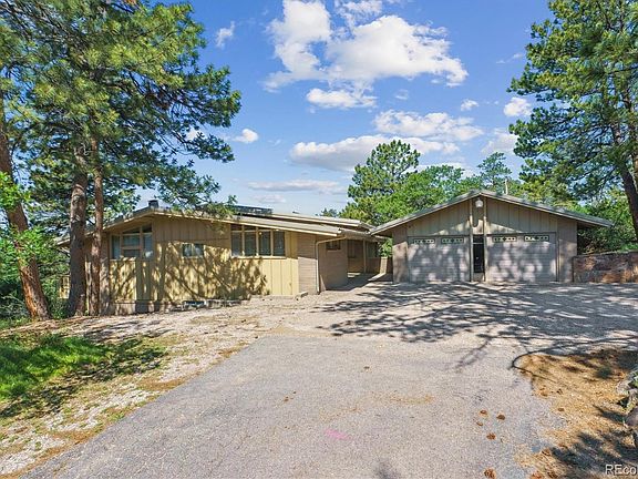 Welcome to Happy Canyon, an amazing and unique neighborhood where you will find beautiful acreage just within minutes of shopping, restaurants, and I-25. This post-and-beam walk-out ranch-style home is a diamond in the rough. It has over 3400 finished sq. ft with 6 bedrooms (or one could be used as an office), 3 1/2 baths, large rooms for entertaining or relaxing after a hard day. As you open the door, you will find a large entry leading into the formal living and dining rooms. The kitchen offers granite countertops, great cabinet storage, all appliances, plus a wonderful, generous nook with numerous windows to enjoy the beauty of this amazing lot! Adjacent to the kitchen, you will find a spacious laundry room complete with a utility sink, cabinets, a built-in desk, an ironing board, a storage closet, and a door for easy access to the outside. Opposite the level is the primary bedroom, bath, and an additional bedroom or office. The basement includes 4 additional bedrooms, 2 baths, a family room with a bar area, and a walk-out to the back yard. The oversized detached garage is perfect for not only cars, but also storage and/or a workshop. Additionally, there is a 35x36 storage garage that can hold up to 8 cars, a boat, toys, or other storage items. The lot is located on a corner and offers a sand volleyball court, a handball court, and a beautiful area for family or neighborhood gatherings. The home is light and bright, with wonderful meadows and mature trees, not to mention abundant Colorado wildlife. The Outlets of Castle Rock, just 8 minutes away, is an easy commute that includes Denver (20 miles), DTC (14 miles), Colorado Springs (35 miles) & Denver International Airport (37 miles). This home has great "bones" and is perfect to upgrade to make it your home. so many possibilities. Home is being sold "as is". The owner will consider an owner carry with 35% down.