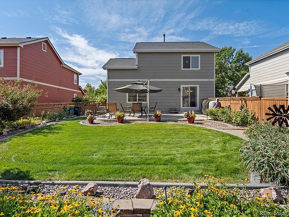 This home has everything to fit your needs, 3 Bedrooms, 2.5 baths, 723 sqft unfinished basement, 2 car garage with additional parking with the extra long driveway. This home features the most incredible backyard oasis. Take the stress out of maintaining landscaping with the sprinkler system in the front and back yard and drip lines to keep the work to a minimum and enjoyment to a maximum. The flourishing landscaping includes, blooming perennial flowers, mature grape vines and raspberry bushes for you to enjoy for years to come. The backyard also features a separate fully fenced, well groomed dog run that is connected into the garage for added shelter to keep your furry family happy. Never worry about storage with the oversized shed in the backyard and the large basement. The kitchen features timeless upgrades with gorgeous granite countertops, stone backsplash, and updated appliances. You will get to treat yourself with the convenient location with the prairie center offering a variety of shopping and restaurants. Have a quick and easy commute with I-76 only 5 minutes away. This home checks all the boxes, book a showing today and see for yourself!