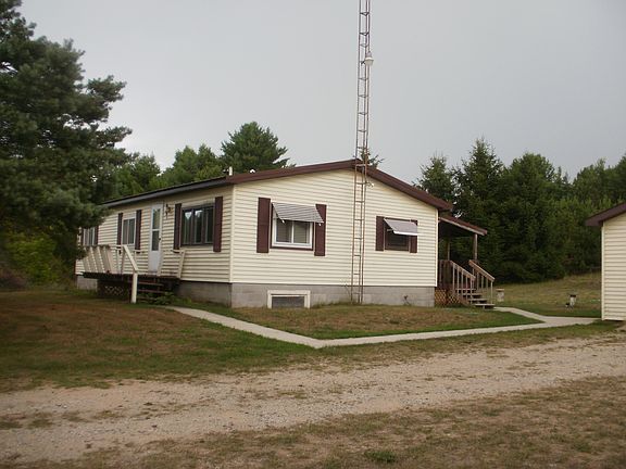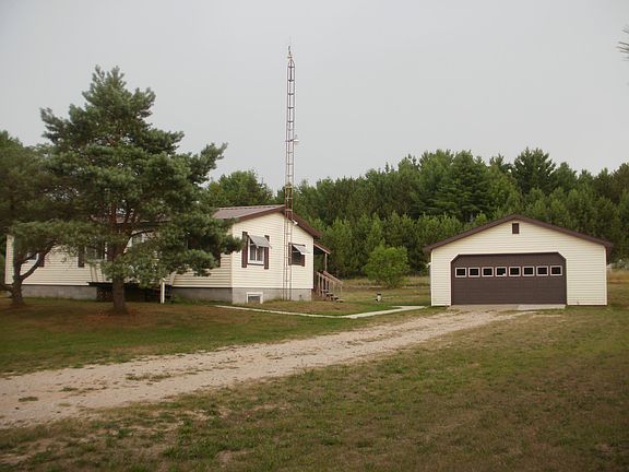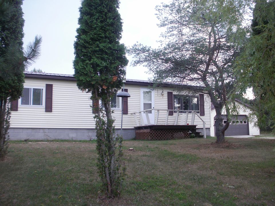 The owners have decide they miss Florida so are returning to the sunshine. This home has a full basement, central A/C , alexis featured. End bright kitchen, Inviting living room flows to the dinning area w/ patio doors to a deck for grilling.Decks & sidewalks to the garage and outbuilding. The 2.66 acres offers privacy. The distance is 10 miles to the traffic light by Walgreen's,13 minutes away. River and lake accesses near by. Paved road. Fairly priced at only $69000. Vinyl sided and replacement windows Sliding patio door .to the rear deck overlooking the spacious private back yard. Wood stove chimney in the basement with a shoot for the wood. Back entrance to the home or basement, plus front entry off of the front porch creates a smooth flow . Home Warranty included.