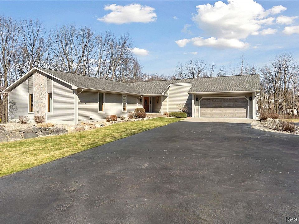 **Offer Deadline Sunday March 23 @ 7PM** Welcome to this immaculately maintained, custom built ranch conveniently located in the heart of Clarkston. This home has been lovingly cared for by a single owner for the past 25 years. Set far back off the road with a gated entrance, you can pull your vehicle into one of two attached garages; a 2-car garage on the main level, or the incredible 4-car garage and workshop on the lower level of the home. Inside is a spacious kitchen with all brand new appliances, and a cozy living room featuring vaulted ceilings, fireplace, and large windows throughout which drench the space in natural light. Enjoy the view of the private wooded lot from the new Trex deck overlooking the back or the property. All four bedrooms are located on main floor and have plenty of closet space, including primary suite which features large walk-in closet and full bath. Downstairs you'll find the massive walkout basement, a wide open space ready for your personal touch that includes a full bath, laundry, and large storage area. The real gem is the 4-car garage, a car or toy lover's DREAM, with space for up to 4 vehicles and equipped with an air compressor (piped to both sides of the garage for multiple work stations,) exhaust, ceiling fans, side entry, and its own furnace. Other property features include 2x6 walls for maximum temperature control and efficiency, Generac generator, new reverse osmosis system, freshly painted interior and NO HOA!!