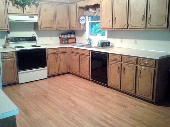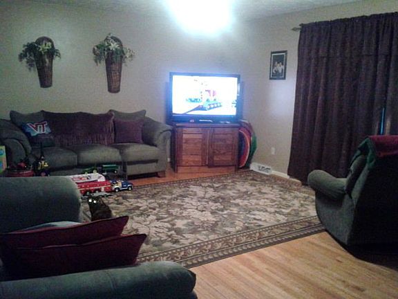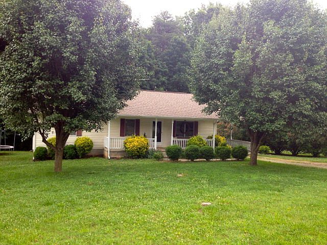 Great room, hall, kitchen a& dining area have wood floors, Kitchen has lots of cabinets,and stove, dishwasher, refrigerator are included. Mini blinds, ceiling fans, & all light fixtures convey. 3 bedrooms (one has wood floors) 2 baths, Roof (08-2002); heat pump, hot water heater (2011), 14 x 14 storage building with electricity (2001). Full walkout basement with partially finished rooms plus laundry area. Large deck, 1 car carport, fenced in backyard on almost an acre.
