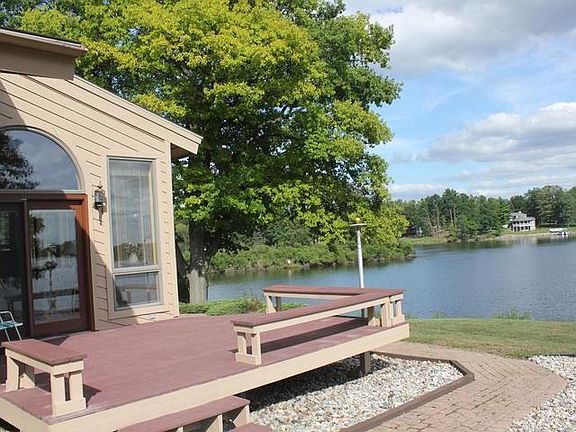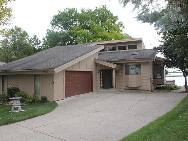 Beautiful knotty pine and unique open floor plan with awesome view from floor to ceiling windows. You step into foyer then to a raised kitchen & dining area. Then down to a spacious sunken living room with built in natural wood fireplace, knotty pine ceiling & plenty of windows. Panoramic view of both Lake Lancelot and Lake Lancer. Sliding door takes you out to a Trek Deck patio and stone walkway. Kitchen: Large serving/work center island, plenty of storage. Main floor Master suite overlooks the lake and offers a private bath and a large 10x6 walk-in closet, 2nd spacious bedroom has ample closet space and both bdrms have high 15ft ceilings w/tall windows for natural light. There is a loft w/ladder for kids storage. Basement: 3rd roomy bedroom, full bath, family room, laundry, Huge 27'x15'storage area & additional closets in laundry room. Central Air and Force Air natural gas heating, all new skylights, attached 2 car gar, paver walkway, sprinkler system and more.