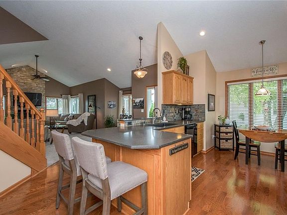 Pristine 1.5 story home offers over 2,600 finished sqft of designer paint paired with beautiful flooring. Step inside to vaulted ceilings and open floor plan. Well cared for home, with updates throughout, offers a huge family room w/fireplace. Kitchen w/new counter/sink holds eating area, pantry with ALL appliances included. 1st floor master suite is spacious with walk-in closet & private updated master bath w/a convenient pass through to 1st floor laundry. Half bath is near the huge 3 stall garage. Open staircase leads up to a loft with office/seating area, bath & 2nd bedroom. Wait there is more! The finished lower level holds family room w/wet bar, bath & storage. Relax on the deck with pergola surrounded by beautiful landscaping or take a walk to the lake with walking and bike trails, movie theater and restaurants. Copper Creek Clubhouse features grill, conference room, 18 course golf & putting greens. Did we mention it's a short commute to downtown? Make this your Home Sweet Home!