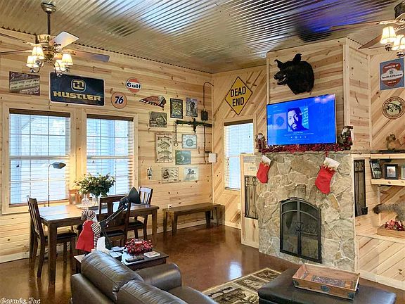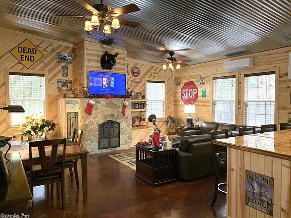 Fully Furnished Cabin 1/2 mile from the White River!! This 1 bedroom 1 bath cabin has it all and then some!! Open floor plan with a native stone wood burning fireplace, custom kitchen, master bedroom with a sitting area, his & her closets, full bathroom with double vanity, and a loft area for the kids! This home has stained concrete floors throughout, security system, ductless heating/air system, and so much more. 20x50 carport covering with a full RV hookup and 50 amp service!