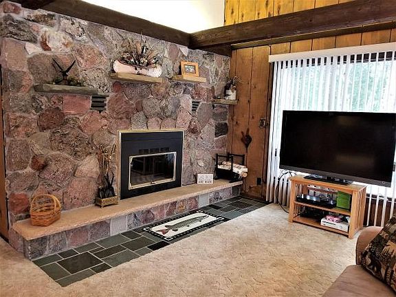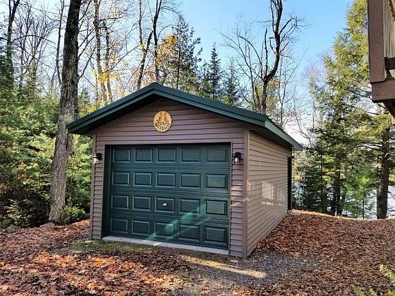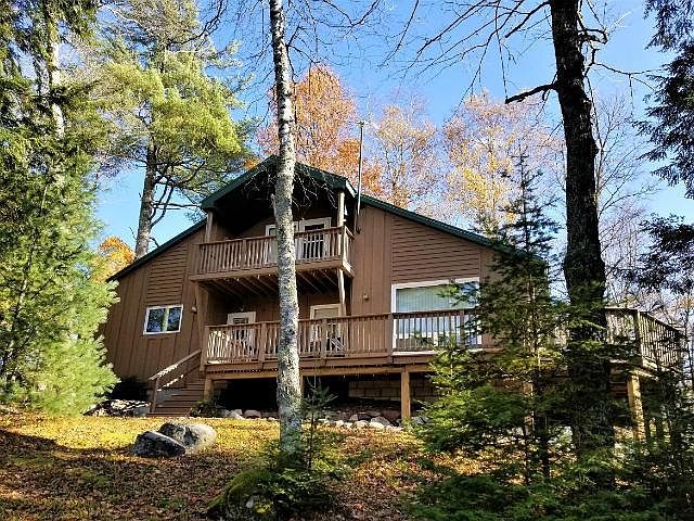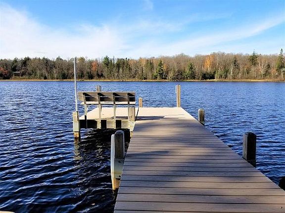 Lake of the Falls - Beautiful 2 BR, 1.5 BA year round home located in quiet bay on 338 acre full recreational lake. Features open living concept w/beautiful fieldstone fireplace, large windows & patio doors for splendid view of lake & easy walk out to huge open sun deck w/Trex decking. Lakeside dining area, KIT w/stove, refrig, microwave, dishwasher & lots counter space & cabinets. Also on main level is 2 BR & full BA. Loft with half bath, private lakeside balcony for beautiful sunsets & listening to the sounds of nature. Walkout lower level w/laundry area, private shower, generator ready transfer switch for 8000 kw generator w/outside plug in, work bench area, lots of storage room. Many upgrades- metal roof, 5 " gutters w/leaf covers, new 12 x 24 garage, central air, permanent pier w/maintenance free Azek decking. Total 275 ft shoreline w/sand beach area, 0.71 acres land $329,900. Seller will divide - 165 ft w/house & garage for $274,900 & 110 ft wooded lot $68,900