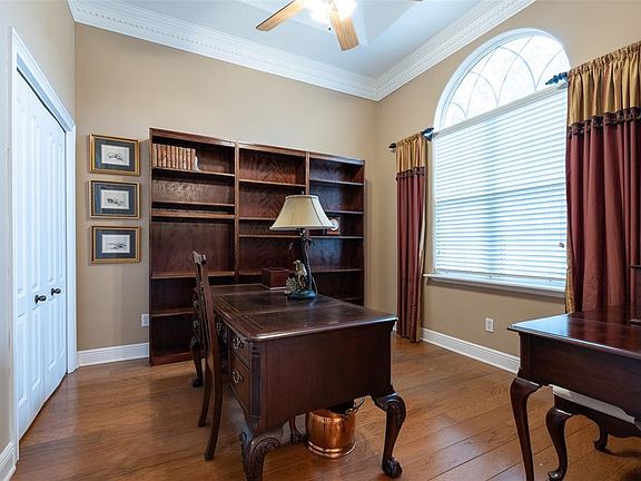 Welcome to this beautiful custom home that was originally the model home with all kinds of upgrades. IMMACULATE AND MOVE-IN READY TURNKEY HOME! ~~ 2022 ROOF ~~ 2023 WHOLE HOUSE GENERATOR w/GAS ~~ This is a 3/3/2 home WITH OFFICE on 0.46 fenced acres. As you walk in the entry you can see straight out through the formal living room to the back lanai and fenced yard. To the right through a set of French doors is a huge office/den with closet which could make a 4th bedroom!. To the left is a beautiful formal dining room with chair rail, wood floors, and gorgeous tray ceiling. Kitchen has all SS appliances, granite counters with breakfast bar, an eat in dinette, large pantry, and so much storage space with the taller custom cabinets. The 3-way gas fireplace that separates the dinette to the great room sets the mood in whichever room you choose to relax in. With this amazing split bedroom plan to one side of the home is the primary suite with tray ceiling, lanai access, TWO walk-in closets, tiled walk-in shower, jetted tub, dual granite vanities, linen closet, and water closet. One of the 3 full bathrooms is just outside the master suite in the hallway with it's own access to the lanai. On the other side of the home are the designated 2 guest bedrooms that were custom decorated for your children or grandchildren. Guest bath includes one sink and a tub/shower combo. The inside laundry room includes washer/dryer, sink, and lots more storage. More ABOVE AND BEYOND EXTRAS include expanded garage to give 900 sq ft of extra space, tankless hot water heater, central vac, security system (never activated by current owner), crown molding throughout, built-ins in the master closets, chair rails, beautiful ceiling designs, tile in kitchen and bathrooms, wood flooring in the dining room, office/den, and hallways. A 20 x 42 screen enclosed patio right outside the large sliding doors for your outdoor living. Newly installed chain link fence to keep your beloved pets secure and safe. Newly installed whole house generator and gas line provide the secure feeling of constant electric during any power outages. And remember ~ turnkey ~ means everything you see stays!! This property is in a popular neighborhood on the SW side of Ocala and has an excellent location convenient to shopping, dining, medical, entertainment, WEC, and I-75! DON'T LET THIS BEAUTY GET AWAY!