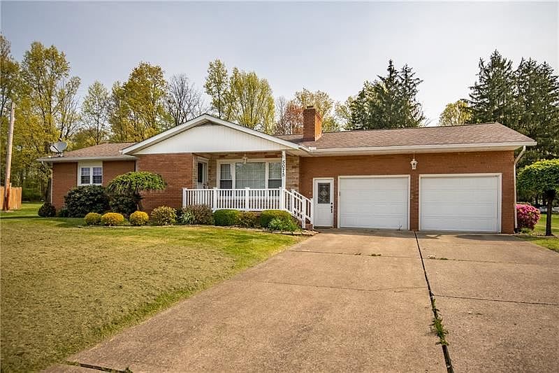 Enjoy quiet country living, and still be close to town. This 3 bed, 3 full bath brick ranch home in Hermitage sits on a large, flat lot, almost an acre. The living room with stone fireplace welcomes plenty of natural light through the large front window. Through the living room, you'll love the kitchen with lots of storage space that opens to the dining area with a sliding glass door out to your gorgeous covered back deck. Down the hall you'll find three bedrooms and a full bath. The primary bathroom has a full en suite bathroom as well. The basement is partially finished with a fireplace, kitchenette, and full updated bathroom. The two car garage has epoxy finished floors, counters along the back, and numerous outlets that make the space perfect for entertaining or a great workshop area. You can enjoy your large, private backyard from the beautiful back deck with additional lower level patio space.