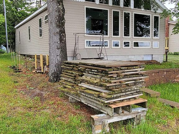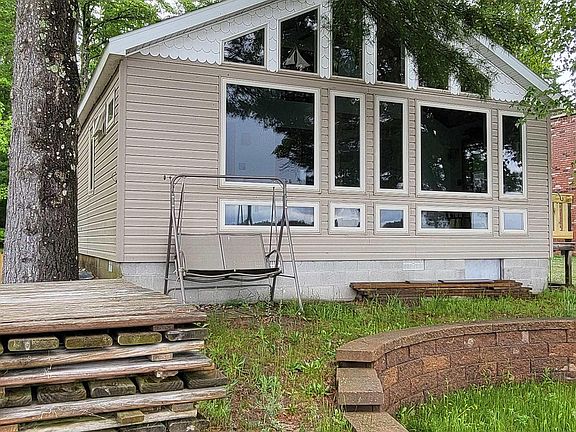 ALL SPORTS LONG LAKE! completely level lot with primo sand frontage! the view is outstanding on the biggest part of the lake and you will see the sunsets and have a full day of sun on your beach! The property is spectacular and i havent even begun to tell you about the house! step back in time to this cottage of yesteryear! so well maintained! all knotty pine charm, walls and ceilings! in great shape!, three bedroom, stone fireplace! with gas insert, all window sunroom was added overlooking lake! all the way across the lakefront side of house! plus across street on back lot,2 car garage with upstairs liv area, 2 br liv rm, room for bath and kitchen if you decide you need that, room for well and septic to be added! room for overflow family and friends who are for sure want to come and stay with you at the lake! Although this is a very cool cabin,with knotty pine, it has beend updated to maint free vinyl exterior, newer shingles, windows, septic, this is a unique jewel.level to the water and sugar sand beach, biggest part of the lake, nat gas and cable available. forced air heat! so much more to tell